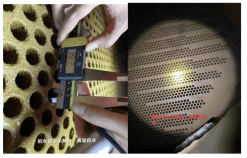 通過檢修期間對電廠機組凝汽器內(nèi)部鈦管的檢查發(fā)現(xiàn),凝汽器內(nèi)部鈦管結(jié)垢嚴(yán)重,特別是高溫回水區(qū)域特別明顯。實際直徑參數(shù)
