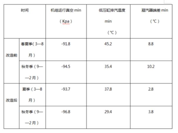 技術(shù)改造,優(yōu)化了凝汽器的清洗方案。通過對改造前后凝汽器端差、機組運行真空度以及低壓缸排汽溫度等性能參數(shù)的對比,可對凝汽器
