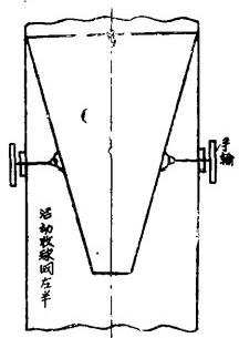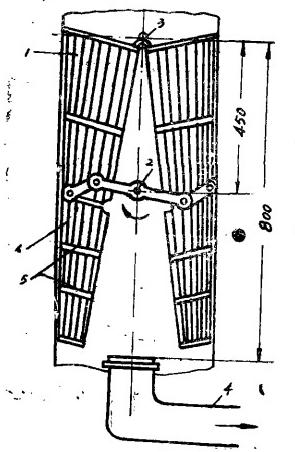 關(guān)于開關(guān)膠球清洗裝置也有二種方案,一種是現(xiàn)采用的,優(yōu)點(diǎn)是開關(guān)方便一些;缺點(diǎn)是杠桿系統(tǒng)和旋轉(zhuǎn)軸都“貫穿”循環(huán)水管,增大了水阻,即使處于“短路”狀態(tài)此水阻仍去不掉。另一種利用類似于潤門開關(guān),在收球網(wǎng)之外開和關(guān),(圖3乙)它在“短路”狀態(tài)時,開啟機(jī)構(gòu)已旋出循環(huán)水管外,可減少短路時的水阻,當(dāng)然機(jī)構(gòu)稍復(fù)雜一點(diǎn),開關(guān)稍費(fèi)事。我們擬在”3機(jī)采用這種機(jī)構(gòu),以和“4機(jī)對比。