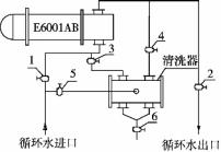 (2)從催化液化氣精制區(qū)E3010循環(huán)水進(jìn)口處,引循環(huán)水進(jìn)在線清洗機(jī),逐臺(tái)對(duì)冷凝器進(jìn)行在線清洗;