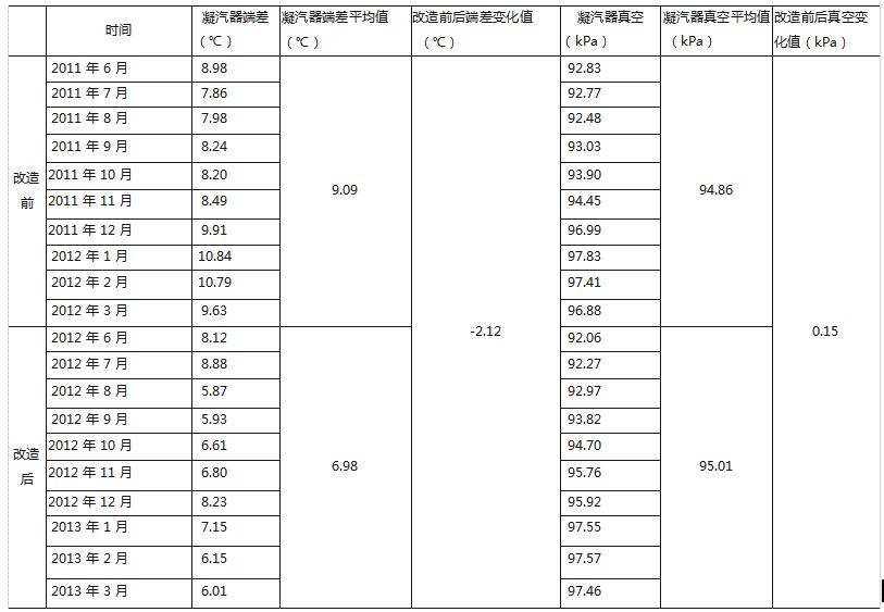 3)2013年1月底電網線路改造停機期間對凝汽器冷卻管進行了檢查,其內壁潔凈無污垢,說明膠球清洗作用明顯。清潔的冷卻管無疑提高了凝汽器換熱效率。