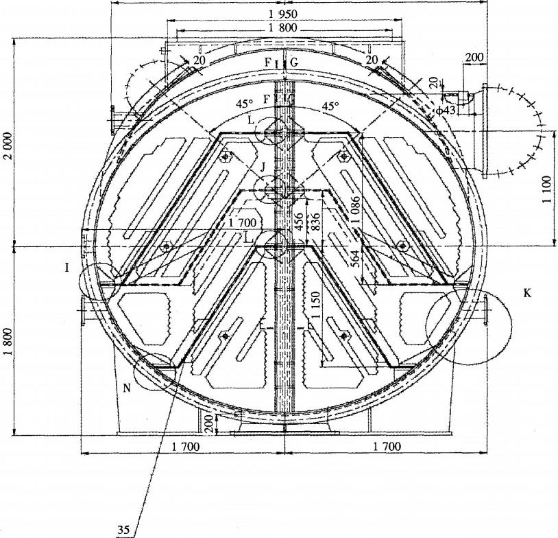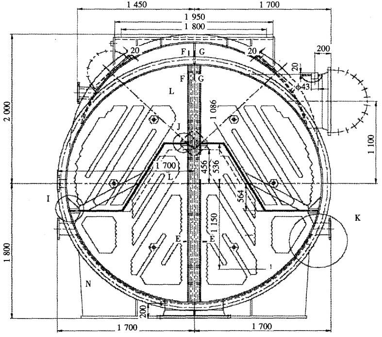 圖2小機凝汽器水室隔板改造后示意圖(單位:mm)次數,保證了膠球能夠順利回收。